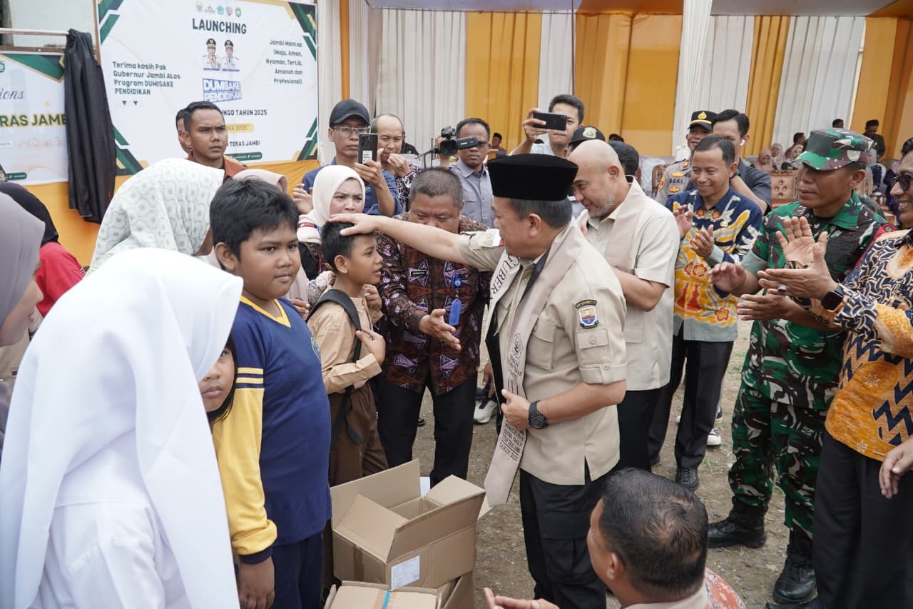 Bungo, fakta.pro- Gubernur Jambi Dr. H. Al Haris, S.Sos, MH mengemukakan, Pemerintah Provinsi (Pemprov) Jambi perlu menyiapkan generasi muda sebagai penerus bangsa, yang merupakan aset bangsa yang perlu ditingkatkan SDM nya. Hal tersebut dikemukakannya saat menyerahkan bantuan dana Dumisake untuk pendidikan jenjang SMA, SMK dan SLB tahun 2025, sekaligus Launching SMK N Titian Teras Bungo dan Pelantikan Siswa-Siswi sebagai bagian dari komitmen pemerintah provinsi untuk meningkatkan kualitas pendidikan di Provinsi Jambi, bertempat di SMK Negeri Titian Teras Babeko Kecamatan Babeko, Kabupaten Bungo, Kamis (04/12/2025).
