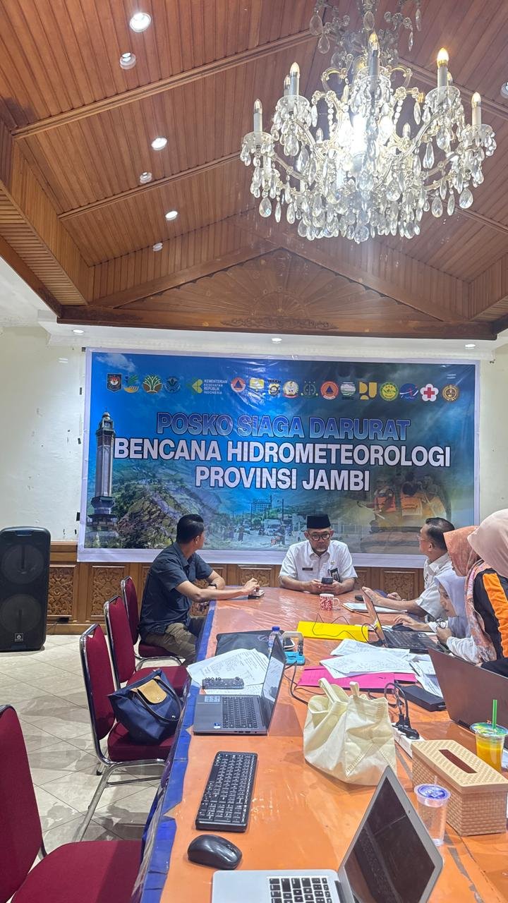Rapat tersebut dipimpin langsung oleh Sekretaris Daerah (Sekda) Provinsi Jambi, Sudirman, dan dihadiri sejumlah pejabat strategis, di antaranya Kepala Dinas Kominfo, Kalak BPBD, Kepala Biro Ekonomi, Kepala Badan Pengelola Keuangan dan Pendapatan Daerah, Kepala Dinas Kesehatan, Kepala OJK Jambi, Direktur Operasional Bank Jambi, Kepala Baznas, serta tamu undangan lainnya.